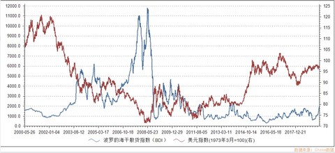 ![]() 2019年以來的BDI走勢圖 BDI緣何猛漲? 年初報價一度暴跌超40%的國際海運市場,為何出現(xiàn)如此反轉(zhuǎn)行情? 首先,分析師認(rèn)為,鐵礦石需求的增長,帶動了巴西和澳大利亞的出貨量,這推動了海岬型散貨船運價/租金的增長。由于澳大利亞和巴西這兩個主要出口國今年出貨量減少,而市場需求又十分強勁,中國港口庫存縮至2017年來最低水平,鐵礦石的價格翻了一倍多。 根據(jù)波羅的海交易所每周報告,近期鐵礦石、糧食等干散貨貨運需求正在明顯回升。受到年初巴西淡水河谷潰壩停產(chǎn)及熱帶氣旋襲擊澳大利亞鐵礦石產(chǎn)區(qū)影響,全球鐵礦石產(chǎn)量預(yù)期明顯下降,淡水河谷預(yù)計全年將減產(chǎn)近4000萬噸,澳大利亞鐵礦石出口量或?qū)⒊霈F(xiàn)自2001年以來的首次下滑。受此影響,國際鐵礦石價格一路走升并刷新5年高點,目前普氏62%鐵礦石價格交投于115美元附近,年內(nèi)漲幅近75%。 其次,從船運自身供需來看,2019年上半年,散貨船新船訂單量同比下降73%,暗示未來運力下降,或造成船運市場供給緊張,因此運費有上行的驅(qū)動力。 2月以來好望角型和巴拿馬型運費指數(shù)快速反彈,其中一季度巴拿馬型運費指數(shù)的反彈是驅(qū)動BDI指數(shù)上漲的主要動力,二季度開始好望角型和巴拿馬型運費指數(shù)雙雙反彈,帶動BDI指數(shù)快速飆升。 再次,2020年開始國際海運行業(yè)將采取低硫船用燃料,會提高當(dāng)前運費成本,而我國現(xiàn)在內(nèi)海運輸已經(jīng)逐漸向低硫船燃轉(zhuǎn)變,這在運費成本端支撐了BDI指數(shù)。 簡而言之,二季度鐵礦石運價回升帶動了干散貨整體運價指數(shù)上行。集運方面,受益于需求回升,集裝箱出貨量持續(xù)增加。運力方面,市場新增運力偏少,供應(yīng)緊張加劇。疊加油價快速上漲等因素,船東信心較高。業(yè)內(nèi)人士認(rèn)為,隨著航運旺季到來,運價有望進一步提升。 BDI未來走勢如何?能否提振航運股? 從年初創(chuàng)新低到近期持續(xù)猛漲,BDI漲勢的持續(xù)性能保持多久? 預(yù)判趨勢要從與BDI具有相關(guān)性的一些指標(biāo)來看。 1)BDI指數(shù)與初級商品市場的價格正相關(guān)。也就是說,若煤炭、有色金屬、鐵礦石等價格上漲,BDI指數(shù)一般也要上漲。 海運市場7月起進入傳統(tǒng)旺季,BDI漲勢或?qū)⒊掷m(xù)。 根據(jù)野村證券跨資產(chǎn)策略師高田(Masanari Takada)的觀點,預(yù)計下半年包括鐵礦石、煤炭和谷物等全球大宗商品市場供需關(guān)系有望進一步改善,并繼續(xù)利好BDI漲勢。他指出:“考慮到BDI往往能實時反映中國的資源需求,大宗商品供需狀況很有可能好轉(zhuǎn),至少相對于5-6月而言是這樣。” 國投安信期貨研究院院長丁丁預(yù)判,長期BDI指數(shù)的走勢應(yīng)該還是會有重重壓制。但是進入三、四季度,鐵礦石、煤炭以及谷物等的運輸將逐漸進入旺季,這樣短期內(nèi)還是會繼續(xù)支撐BDI指數(shù)。 2)BDI指數(shù)與美元指數(shù)呈負(fù)相關(guān)。 從歷史趨勢看,如下圖所示,BDI指數(shù)與美元指數(shù)呈負(fù)相關(guān)。
