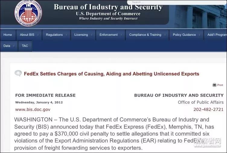 看看歷史,2012年聯(lián)邦快遞因6起違反《出口管制條例》的案例,被美國政府起訴。其中就包括2005年,聯(lián)邦快遞因向北京航空航天大學(xué)提供服務(wù),包裹中含“未授權(quán)出口產(chǎn)品”,而“違反相關(guān)條例”,引起美國商務(wù)部關(guān)注。