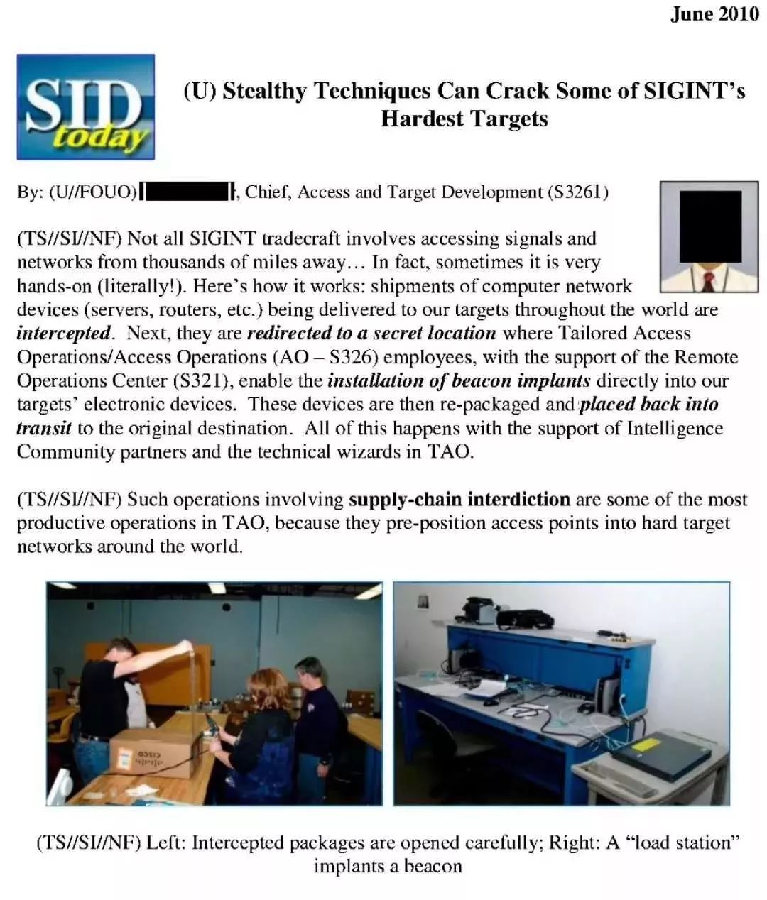 “棱鏡門”事件主角斯諾登曾經(jīng)透露,他親眼見過美國情報部門的專門機(jī)構(gòu)是怎么瞞天過海,套取郵件包裹里的情報的。一種辦法是X光掃描,還有一種辦法是不露痕跡的打開包裹,里里外外研究一番,植入間諜設(shè)備之后,再原封不動的裝回去。