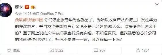 有網(wǎng)友順勢提出疑問,標(biāo)榜“使命必達(dá),合作無間,盡在掌握”的聯(lián)邦快遞,偏偏對華為的包裹既沒有必達(dá),也沒有盡在掌握,是不是讓美國情報部門“盡在掌握”了?